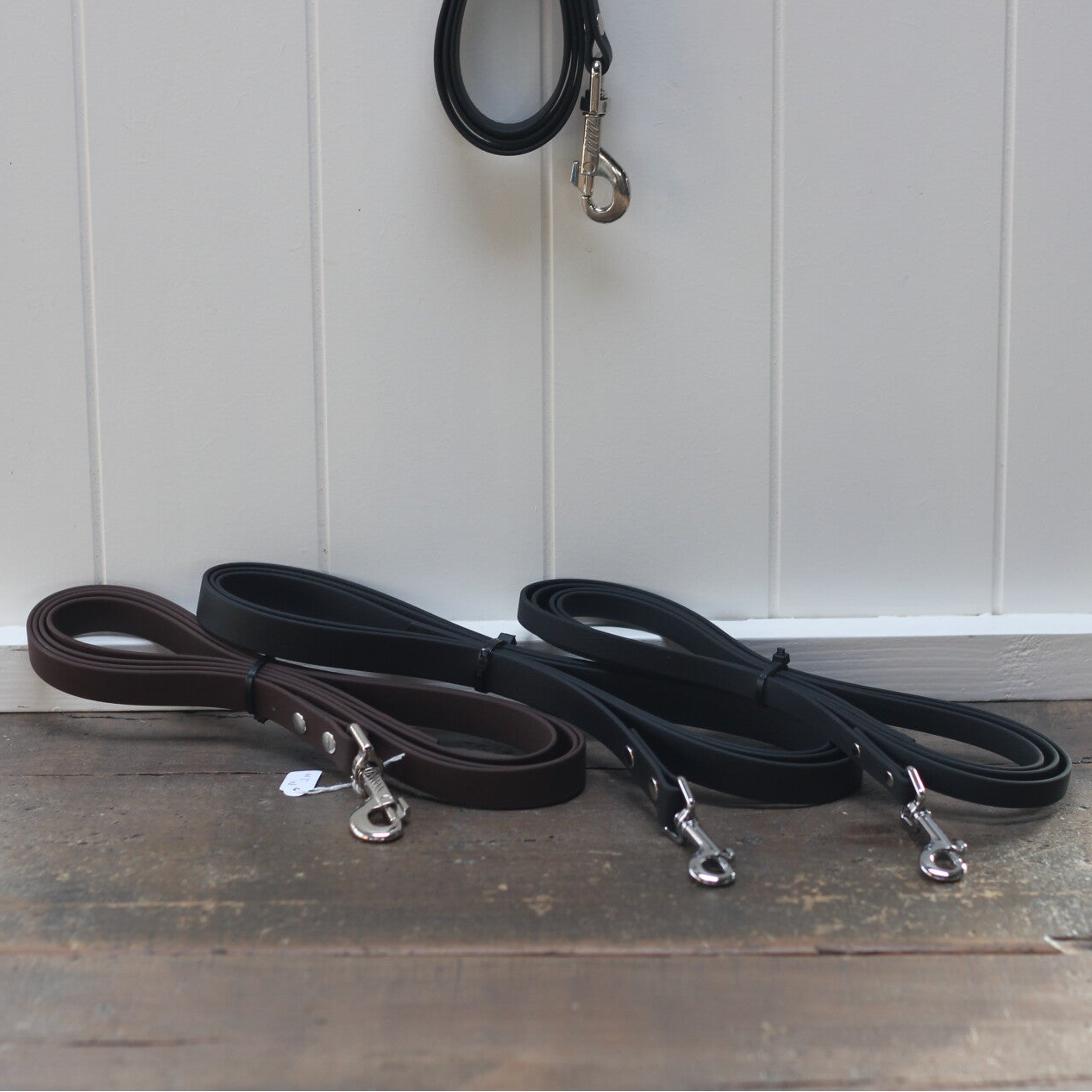 Biothane lijn van 2 meter fijne lijn om mee te trainen en voor de lessen. Het is een licht gewicht product maar heel sterk, makkelijk schoon te maken. Verkrijgbaar in 2 breedtes 19mm en 12mm en keuze in 3 verschillende maten sluiting